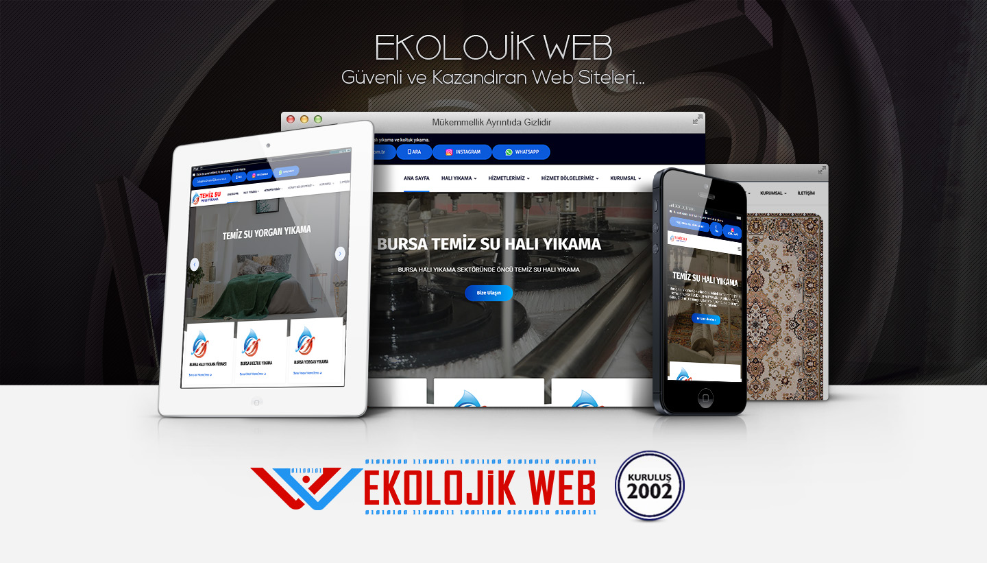 Bursa Temizsu Halı Yıkama kurumsal web sitesi tasarımı ve programlaması, Yönetim panelli, Mobil Uyumlu, Dinamik ve profesyonel web sitesi.
